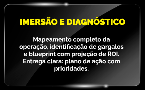 Ferramentas não transformam operações. Processos bem desenhados e inteligentes sim. Nossa metodologia foi construída em campo, testada em operações reais e lapidada para gerar resultados concretos em curto prazo.