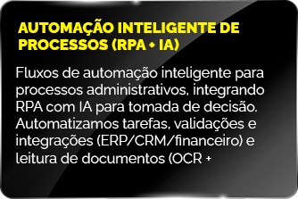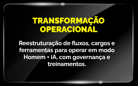 A maioria das empresas já tem ferramentas. O problema é que processos, pessoas e tecnologia não estão alinhados. Nós redesenhamos operações para que a IA gere impacto real no caixa.